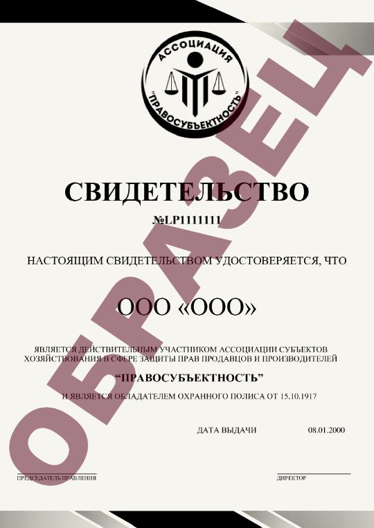 Резиденты Ассоциации "Правосубъектность" получают сертификат резидента. Находясь в офисе этот документ является оберегом компании.